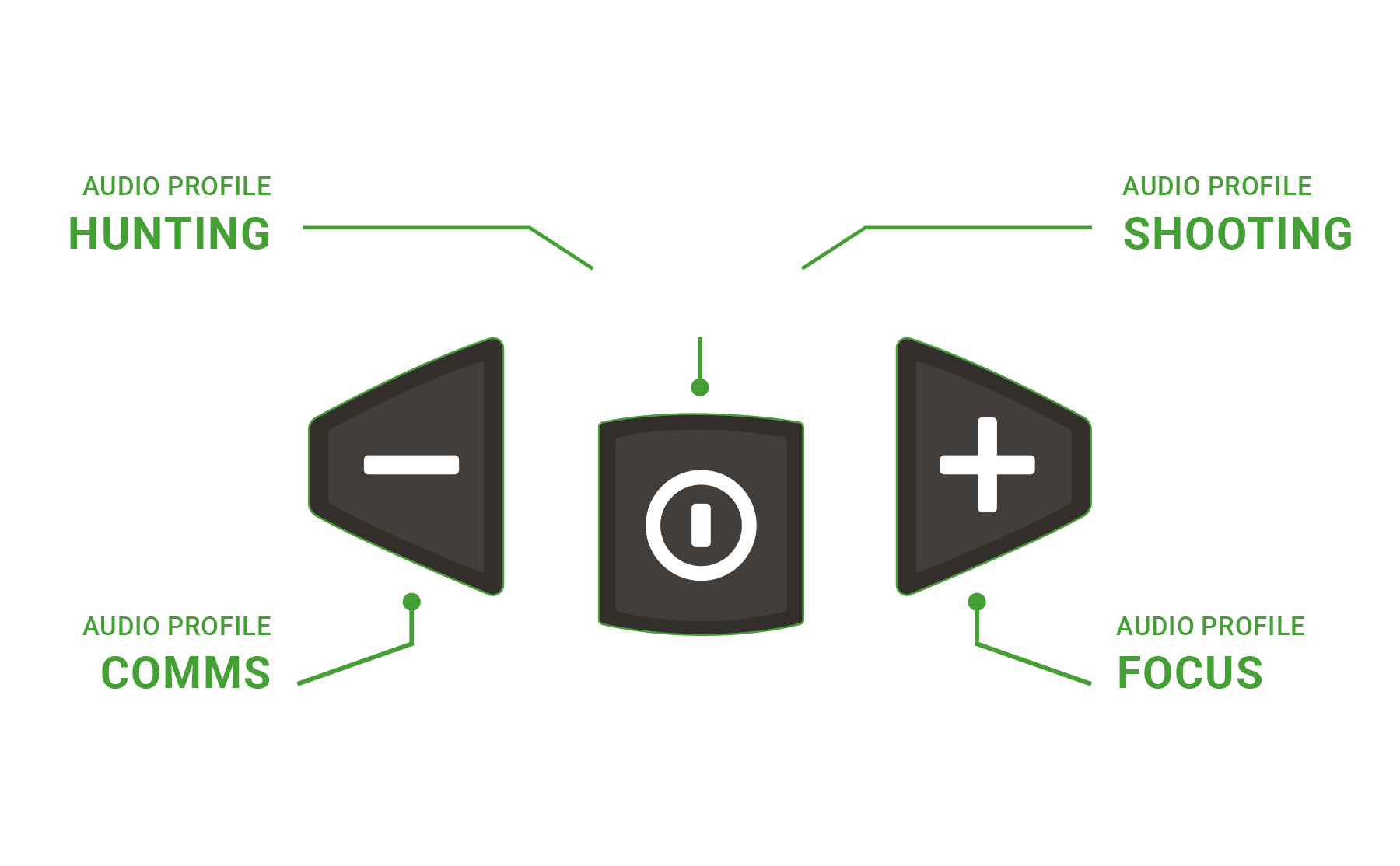 They let you adapt your sound experience to your environment — for example, sharper awareness when hunting or softer sound for range training.